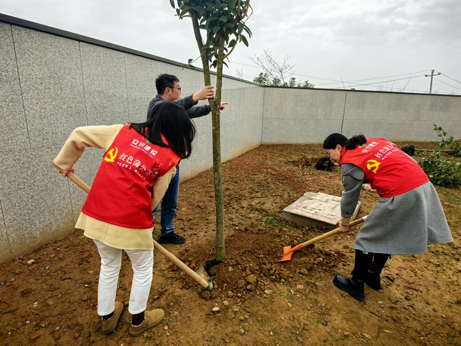植樹活動(dòng)現(xiàn)場(chǎng)氣氛熱烈,黨員們分組協(xié)作,力求每棵樹苗都扎根牢固。黨員們還為樹苗掛上心愿牌,為活動(dòng)留下溫情紀(jì)念。