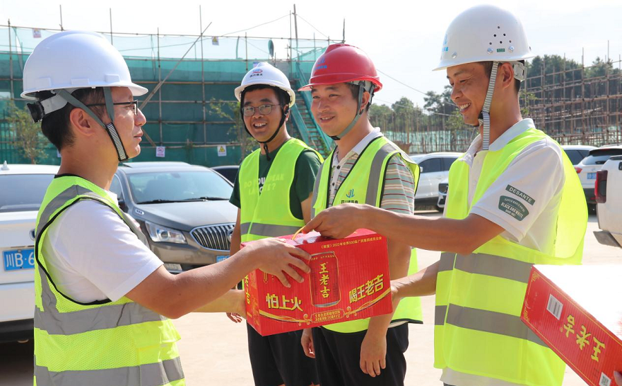 在建設(shè)現(xiàn)場,公司為一線人員準(zhǔn)備了礦泉水、飲料、綠豆、西瓜、藿香正氣液等防暑降溫物品,對他們的辛勤付出表示感謝,并反復(fù)叮囑大家要注意防暑降溫,合理安排施工和休息時間,確保施工安全?;顒又?,還對現(xiàn)場施工人員進行了夏季防暑降溫、中暑急救知識宣傳教育,有效提高了大家的自我保護意識和能力。