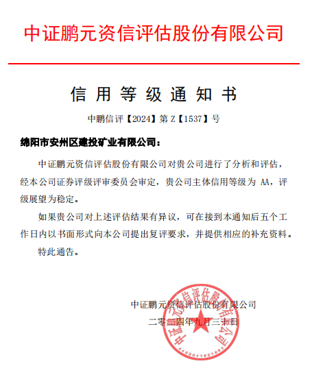 下一步,建投礦業(yè)將以此次AA主體信用評級為契機,緊緊圍繞區(qū)委、區(qū)政府中心工作,強化擔(dān)當(dāng)作為,主動服務(wù)新質(zhì)生產(chǎn)力發(fā)展,充分發(fā)揮經(jīng)濟高質(zhì)量發(fā)展主力軍作用,錨定打造“四川知名、綿陽一流”綠色礦業(yè)集團的發(fā)展方向,進一步加強戰(zhàn)略規(guī)劃引領(lǐng),做強做優(yōu)各業(yè)務(wù)板塊全產(chǎn)業(yè)鏈,梯次推動“產(chǎn)業(yè)鏈”向“價值鏈”升級,真正成為“投融建管營”的市場主體,為加快建設(shè)全省經(jīng)濟生態(tài)強區(qū)和現(xiàn)代化安州作出新的更大貢獻。