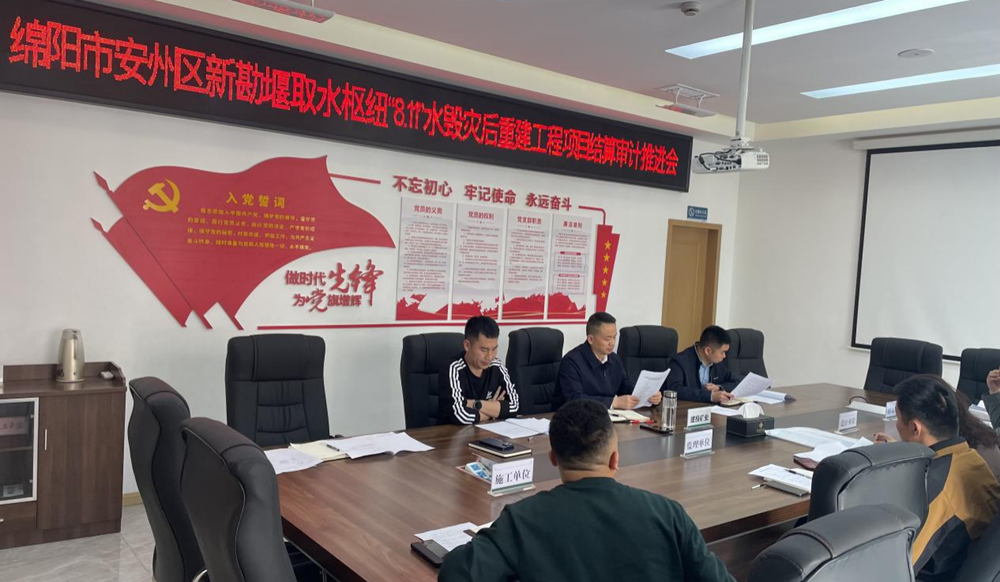 4月7日,公司組織召開綿陽市安州區(qū)新堪堰取水樞紐“8.11”水毀災(zāi)后重建工程項目結(jié)算審計推進會。(素材來源:工程項目部 辛佳洋)