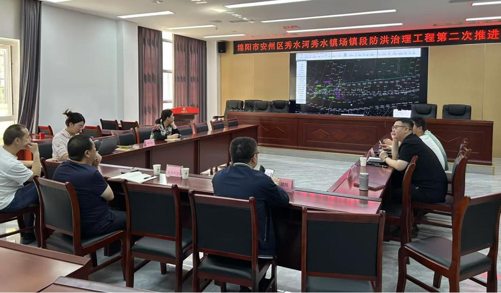 4月23日,公司組織召開綿陽市安州區(qū)秀水河秀水鎮(zhèn)場鎮(zhèn)段防洪治理工程第二次推進會。(素材來源:工程項目部 陳潔)