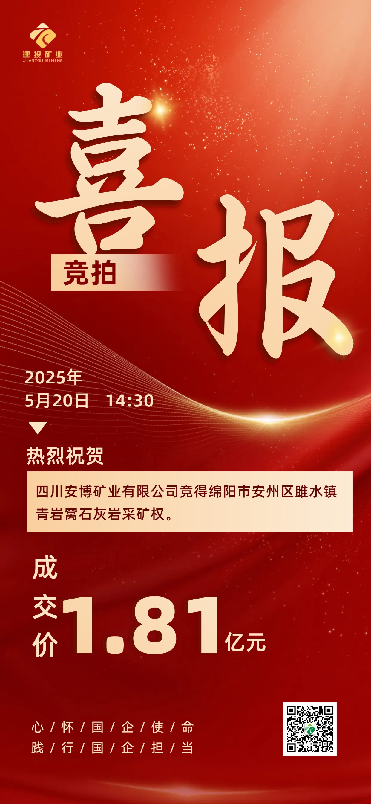 喜報(bào)|綿陽(yáng)安州礦產(chǎn)資源集團(tuán)有限公司下屬子公司四川安博礦業(yè)有限公司競(jìng)得綿陽(yáng)市安州區(qū)雎水鎮(zhèn)青巖窩石灰?guī)r采礦權(quán)