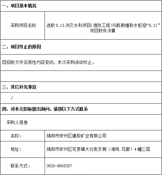選取8.11洪災(zāi)水利項(xiàng)目(堤防工程)與新勘堰取水樞紐“8.11”項(xiàng)目財(cái)務(wù)決算流標(biāo)公告