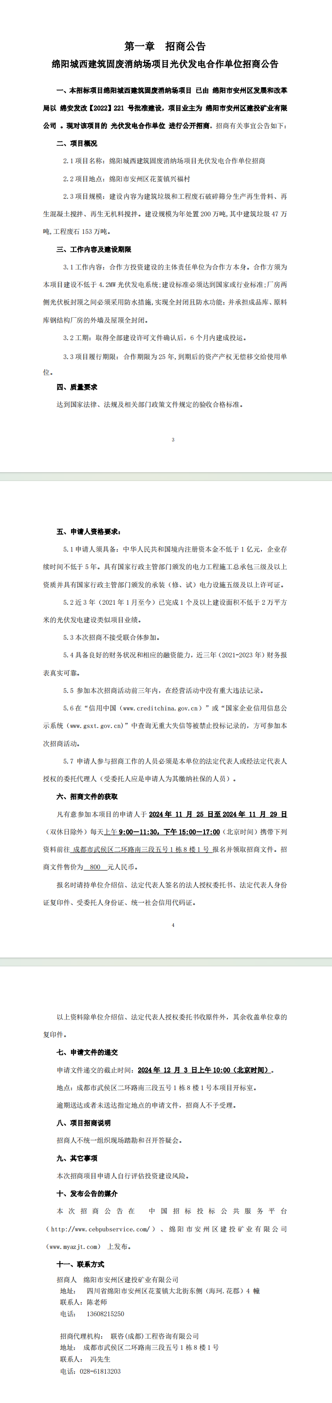 綿陽城西建筑固廢消納場項目光伏發(fā)電合作單位招商公告